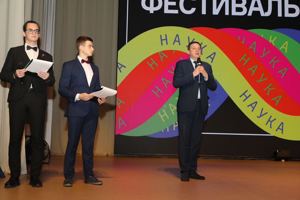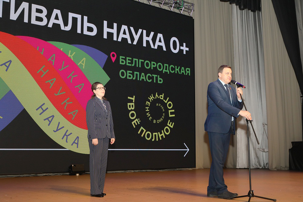 Программу фестиваля, призванного популяризировать науку в обществе, продолжила торжественная церемония открытия, которая состоялась в концертном зале. С приветственным словом выступили заместитель губернатора - министр образования Белгородской области Андрей Милёхин, первый заместитель министра образования региона Андрей Мухартов, заместитель министра области – начальник департамента профессионального образования и науки министерства образования региона Виктория Нелюбова и исполняющая обязанности ректора НИУ «БелГУ» Евгения Карловская.