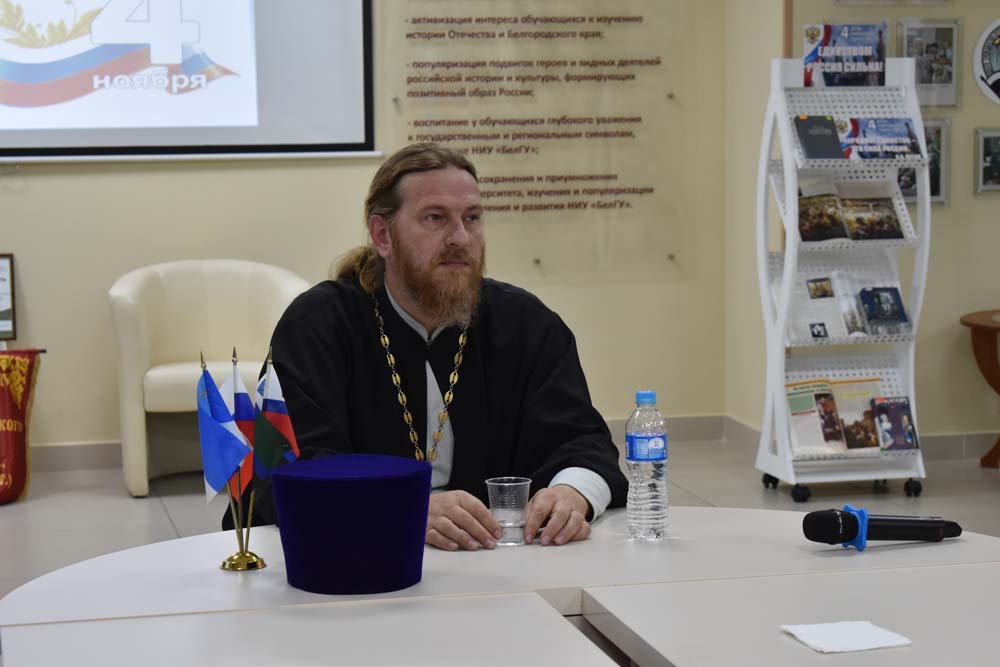 Гостем мероприятия стал настоятель храма Архангела Гавриила - домового храма НИУ «БелГУ», протоиерей отец Роман.