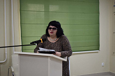 Ведущая встречи, специалист по библиотечно-выставочной работе научной библиотеки имени Н.Н. Страхова Ольга Анохина рассказала студентам об истории государственного праздника – Дня народного единства.