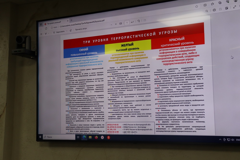 Слушателям подготовительного факультета передали информационные памятки, в которых наряду с информацией о правилах безопасности указаны номера экстренных служб УФСБ, УМВД, ГУ МЧС, дежурно-диспетчерской службы НИУ «БелГУ» и департамента комплексной безопасности.