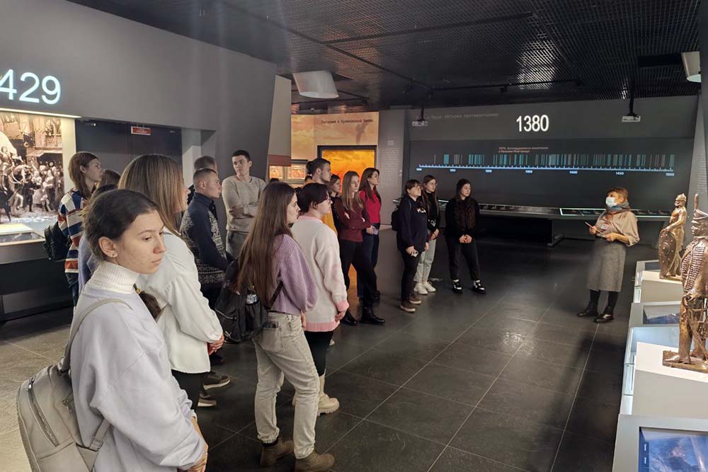 Привлекательна для студентов стала экспозиция «Хронологический мост», где на интерактивном стенде представлены основные знаковые события – от первого поражения русских от Орды в битве на Калке (1223 г.) до победы над Ордой в 1502 году.