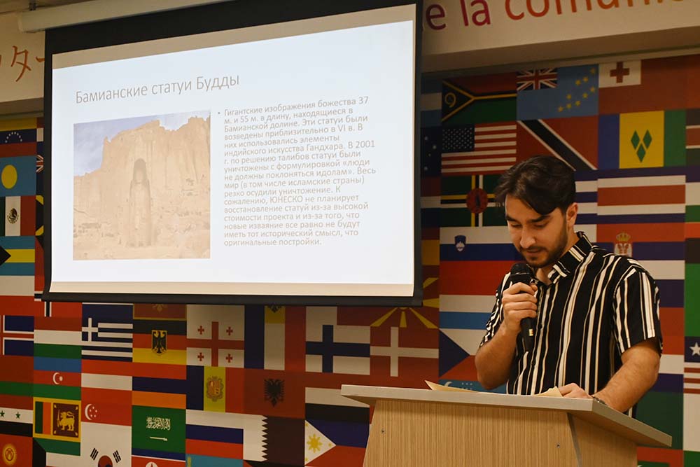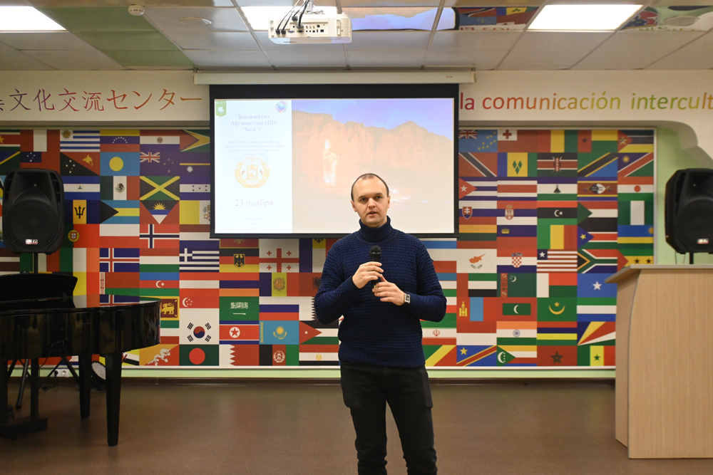 Доцент кафедры международных отношений, зарубежного регионоведения и политологии ИМКиМО, куратор землячества Афганистана Андрей Урывский в приветственном слове пожелал мира народу этой страны. Староста землячества Варис Мансур обратил внимание на значение мероприятия, призванного привлечь внимание к историческому и культурному наследию Афганистана.