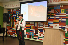Обучающиеся-иностранцы читали стихи о Родине. В исполнении афганского студента прозвучало и стихотворение советского поэта, барда Булата Окуджавы «Бери шинель, пошли домой», и в этом есть особый смысл – взаимодействие культур.