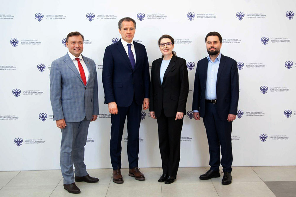 Команду вуза на заседании Совета Минобрнауки по поддержке программ развития под председательством Валерия Фалькова представили губернатор Белгородской области Вячеслав Гладков, и.о. ректора НИУ «БелГУ» Евгения Карловская, директор Объединённого центра генетических технологий НИУ «БелГУ» Алексей Дейкин и старший научный сотрудник лаборатории объёмных наноструктурных материалов НИИ материаловедения и инновационных технологий Никита Степанов.
