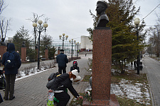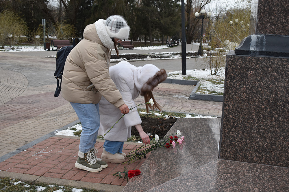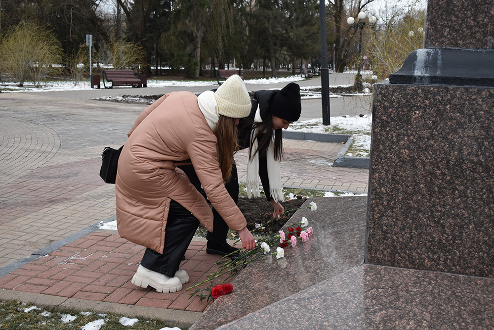 Студенты и преподаватели медицинского колледжа НИУ «БелГУ» возложили цветы к памятнику маршалу Советского Союза Г.К. Жукову и к бюстам Героев на Аллее Славы. Присутствовавший на мероприятии председатель Совета ветеранов войны и труда НИУ «БелГУ» Юрий Никитович Питинов рассказал об истории памятного дня и выдающихся земляках, удостоенных высоких правительственных наград за ратные подвиги при защите нашей Родины.