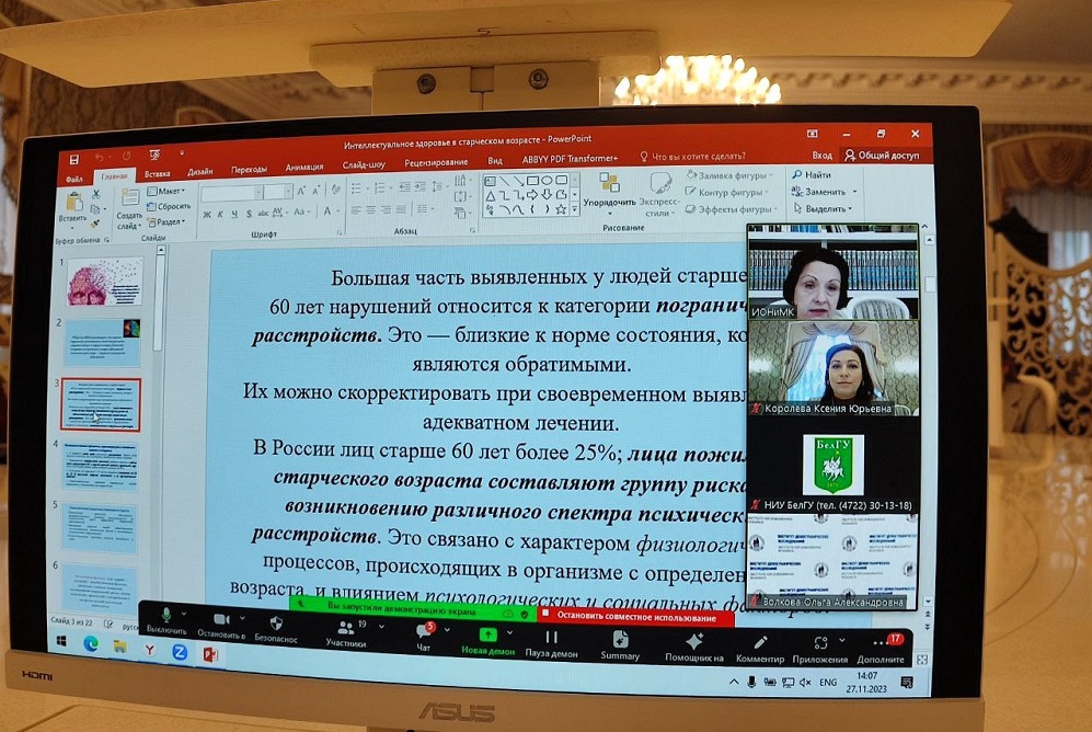 По традиции конференция включала мастер-классы по профилактике стресса и профессионального выгорания от доцента кафедры социальной работы Ирины Волошиной и по профилактике когнитивных нарушений от руководителя вебинар-студии «Лаборатория социальных проектов» ИОНиМК НИУ «БелГУ» Ирины Свищевой.