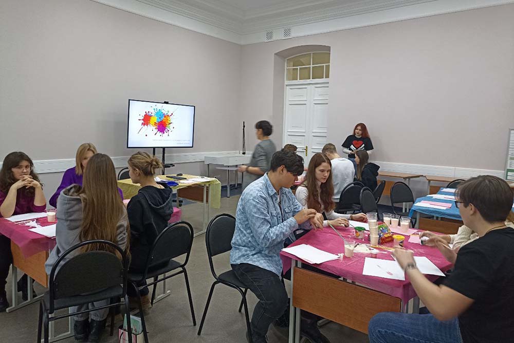 После экскурсии преподаватели кафедры организовали для будущих абитуриентов мастер-классы. Кандидат социологических наук Наталья Подпоринова провела тренинг эффективной коммуникации, а кандидат философских наук Ирина Волошина – арт-терапевтический мастер-класс, в ходе которого участники рисовали с помощью песка, ниток и других интересных предметов.