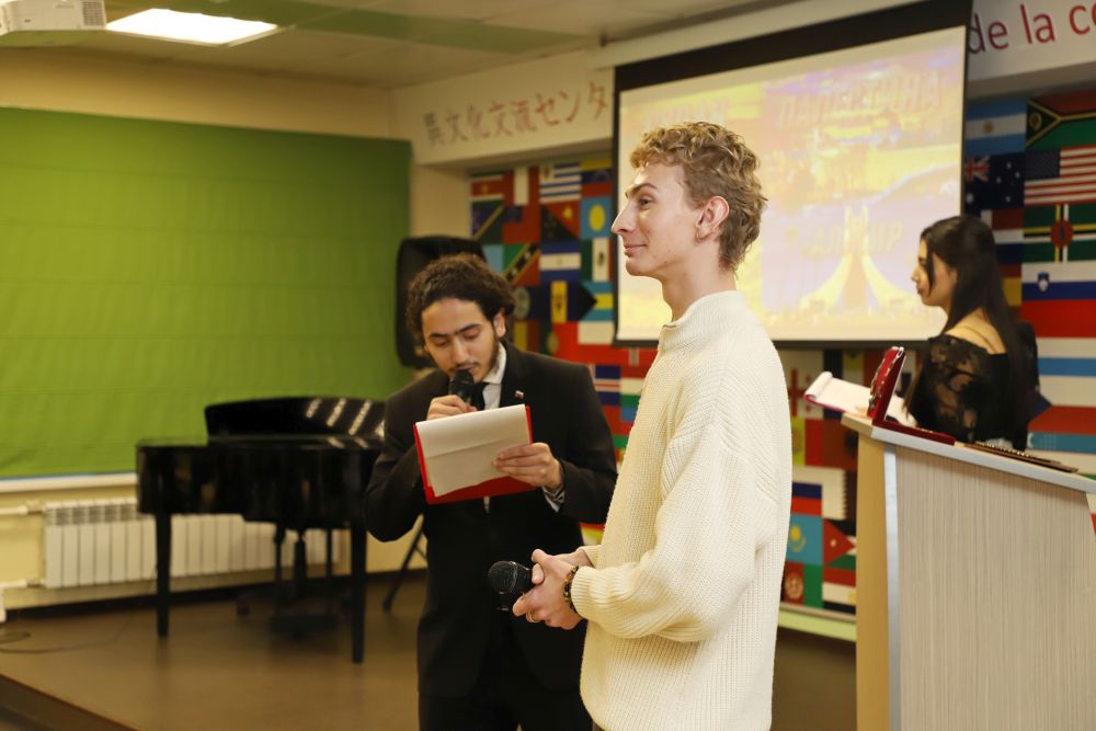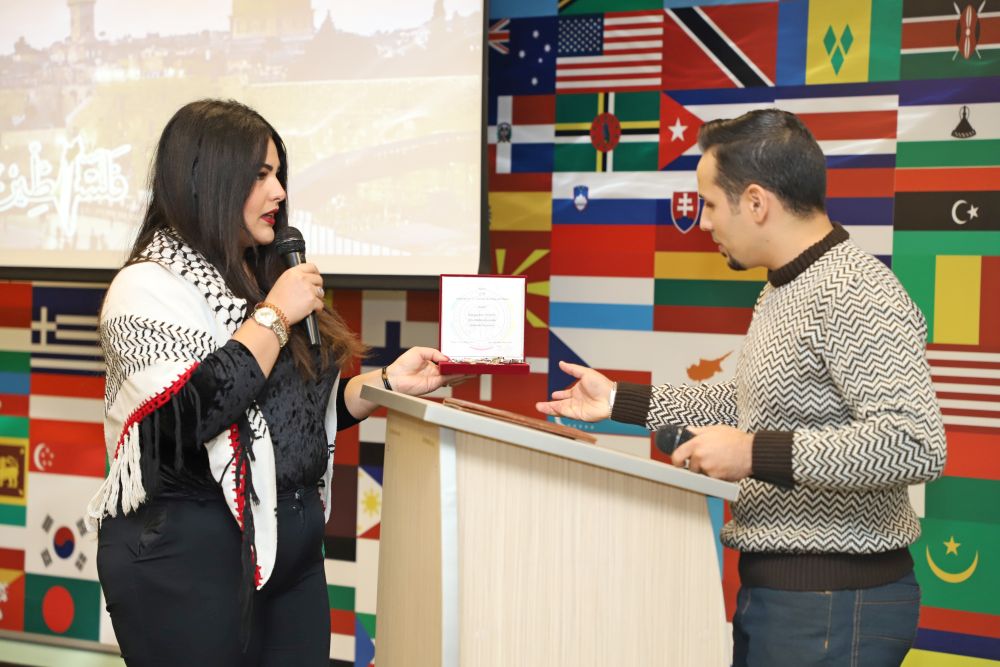 Ведущими вечера выступили Салех Мохамед Абделазим Габалла Ибрахим из Египта и Сара Реккаб из Сирии. Ребята отметили, что подобный фестиваль проводится в НИУ «БелГУ» впервые, и напомнили, что в сентябре этого года состоялось открытие Центра арабского языка и культуры имени Махмуда Дарвиша.