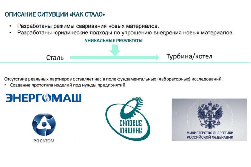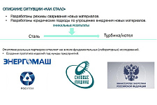 О завершении ещё одного проекта в области материаловедения «Разработка режимов сварных соединений перспективных материалов для энергетического машиностроения» в рамках стратегического проекта «Наука XXI века» рассказал старший научный сотрудник лаборатории механических свойств наноструктурных и жаропрочных материалов Роман Мишнев. К основным задачам, которые предстояло решить команде проекта, относятся переход от материала к изделиям, преодолевая консерватизм энергетической отрасти. Как объяснил Роман Владимирович, заказчики очень неохотно переходят на новые виды сплавов или технологии. В результате реализации проекта были разработаны режимы сваривания новых материалов, а также юридические подходы по упрощению внедрения новых материалов.