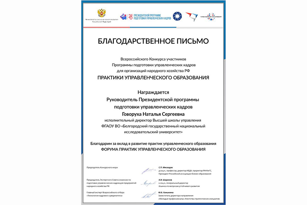 Белгородский госуниверситет получил высокую оценку на конкурсе «Лучшие практики управленческого образования».