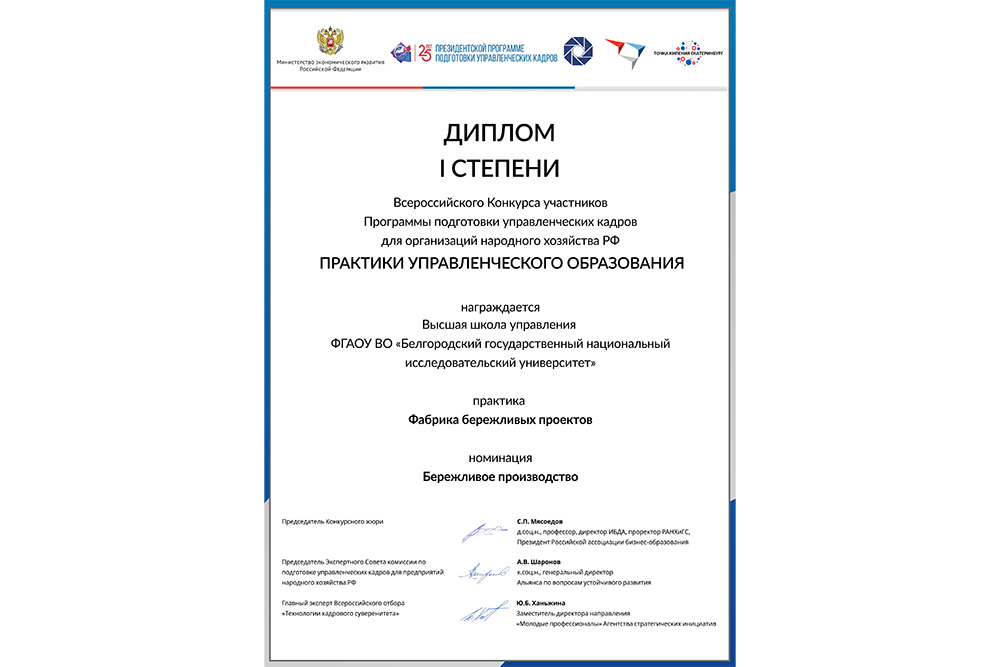 Высшая школа управления НИУ «БелГУ» готовит лучших в стране руководителей по бережливому производству