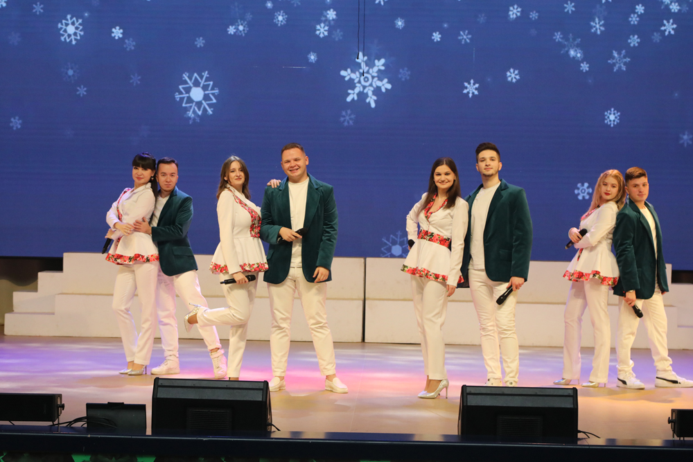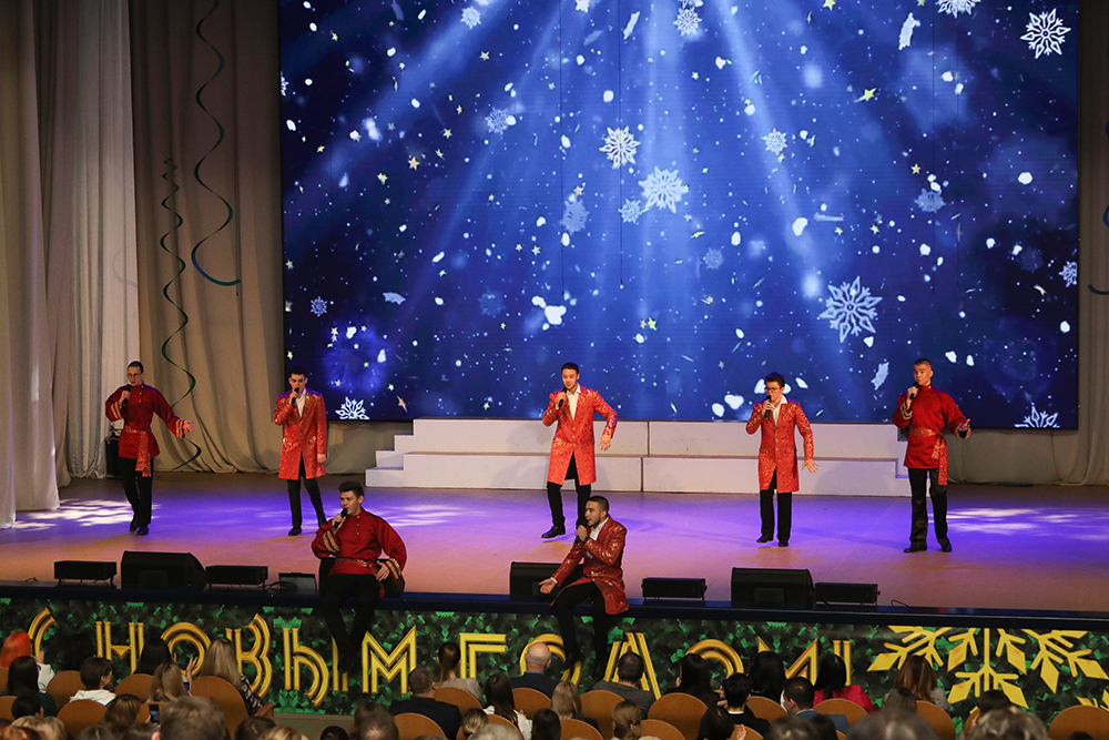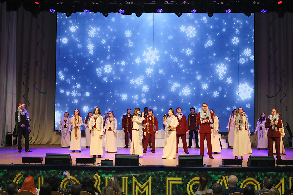 Завершился предновогодний концерт групповым исполнением композиции «5 минут» из кинофильма «Карнавальная ночь».