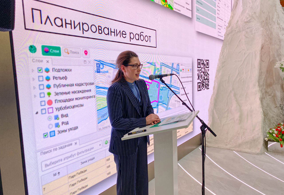И.о. ректора НИУ «БелГУ» Евгения Карловская в своём выступлении дала развёрнутый анализ и продемонстрировала результаты деятельности университета в области планирования зелёной инфраструктуры города. Были показаны перспективы использования современных ГИС-технологий и инвентаризации растительного покрова для управления экологическими ресурсами города с возможностью сохранения городской среды путём использования зелёной инфраструктуры и её совершенствования.