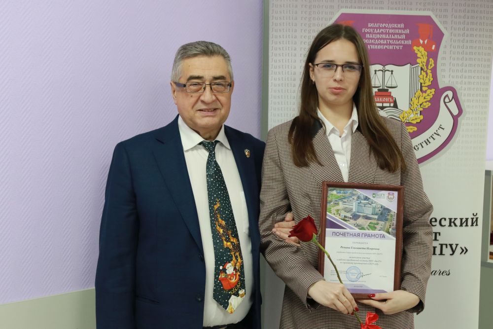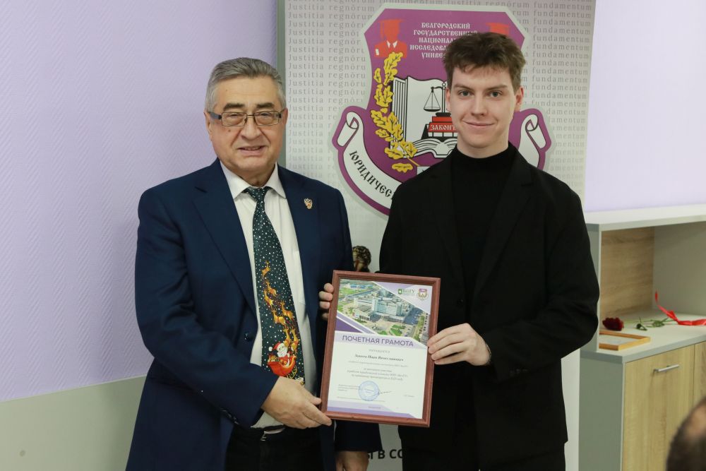 Подводя итоги, директор юридического института вручил заслуженные награды активным клиницистам. Почётной грамотой за активное участие в работе юридической клиники НИУ «БелГУ» по правовому просвещению в 2023 году удостоены Иван Зикеев и Елизавета Репина, благодарностью за активное участие в работе юридической клиники университета отмечены Виктория Нестеренко, Екатерина Шеина, Есения Шепель и Анна Болгова.