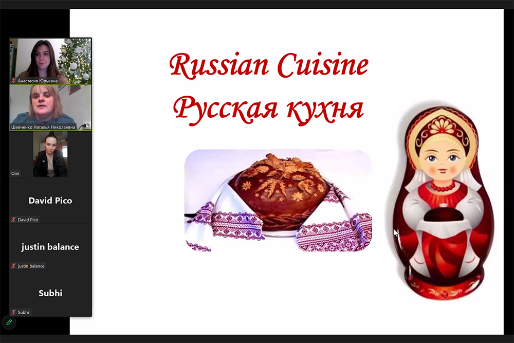 Молодые люди также знакомятся с традиционной русской кухней. Тьюторы подготовительного факультета рассказывают о самых популярных национальных блюдах, делятся секретами их приготовления, а также вместе со слушателями готовят традиционные яства и обмениваются кулинарными секретами.