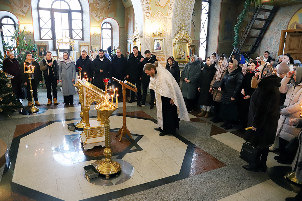 В богослужении, совершаемом ежегодно 25 января в день почитания Святой великомученицы Татианы, приняли участие представители ректората, руководители структурных подразделений, студенческого актива вуза. Божественную литургию и традиционный праздничный молебен в честь святой покровительницы российского студенчества совершил протоиерей отец Роман (Пивнев).