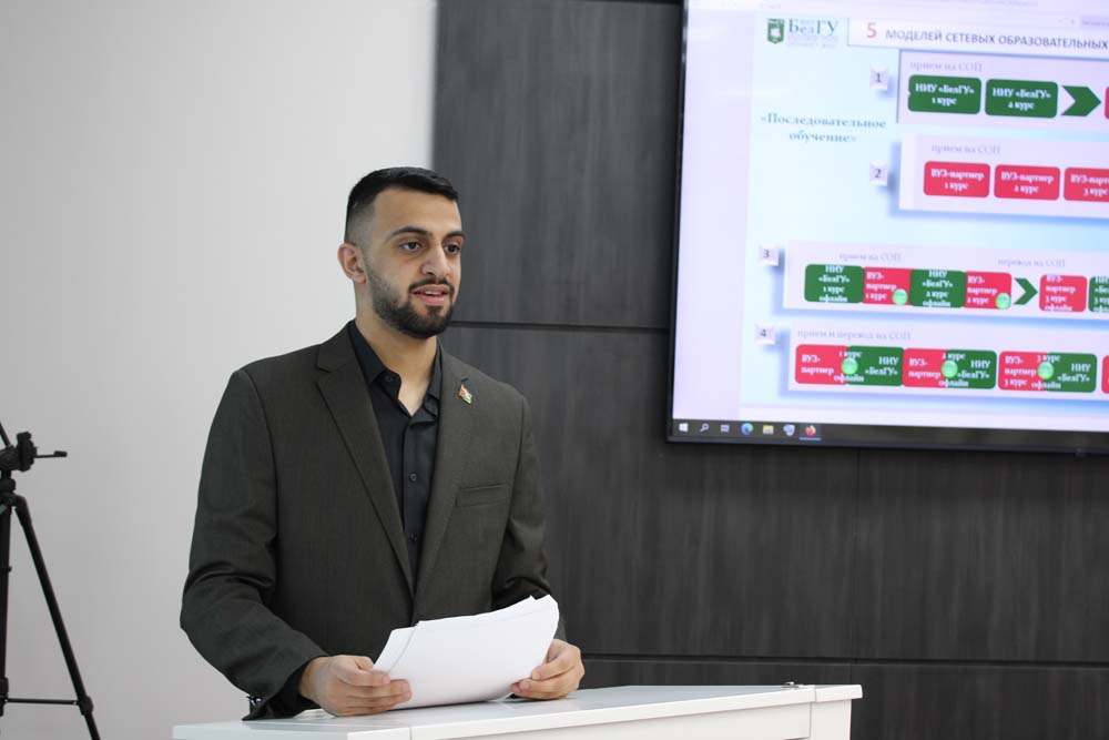 Заместитель директора департамента образовательной политики НИУ «БелГУ» Валентина Шевченко поделилась опытом реализации совместных образовательных программ, продемонстрировав успехи университета во взаимодействии с партнёрами за рубежом. Так, в 2023 учебном году в НИУ «БелГУ» зачислилось более 700 студентов из вузов Китая, Беларуси и Узбекистана.