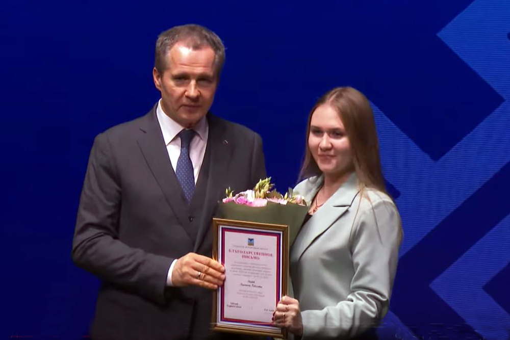 На первой церемонии награждения Вячеслав Гладков вручил грамоты и благодарности неравнодушным людям, которые оказывали помощь раненым и ликвидировали последствий обстрела Белгорода 30 декабря 2023 года. Среди них – первый заместитель директора педагогического института НИУ «БелГУ» Олеся Хорева и четверо студентов Белгородского госуниверситета. Это Анастасия Губернаторова из института фармации, химии и биологии, Анастасия Старченко обучающаяся историко-филологического факультета пединститута, Даниэль Бейч из института общественных наук и массовых коммуникаций и студентка института экономики и управления Анастасия Адаева.