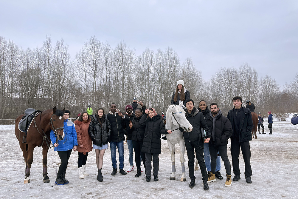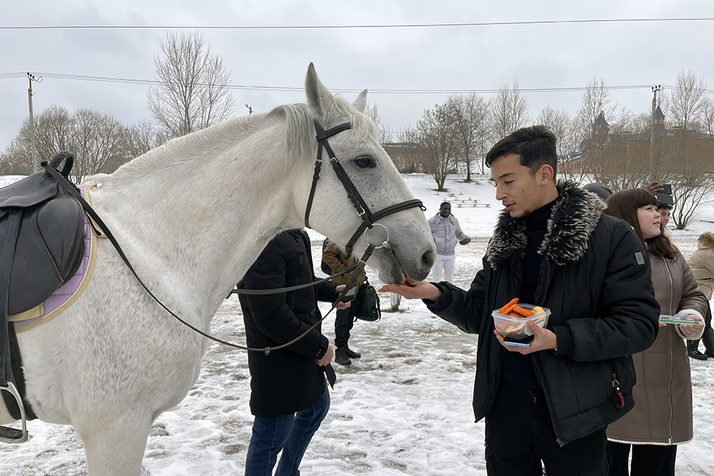 Обучающимся подготовительного факультета представилась возможность познакомиться с миром конного спорта изнутри. Ребята из различных уголков мира не только покатались верхом, покормили лошадей, но и узнали много интересного о традициях конного спорта в России и исконно русских породах лошадей.
