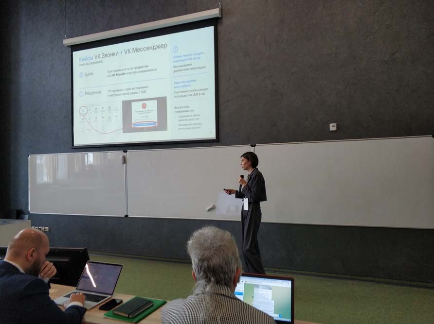 Спикерами на Индустриальном дне выступили менеджер продукта департамента реализации стратегических проектов VK Полина Петрова, ознакомившая с сервисами VK для образовательных учреждений, руководитель Ассемент центра Университета Иннополис Оксана Прохоренко, рассказавшая о развитии проектов и взаимодействии с компаниями в рамках проекта «Цифровые кафедры». Состоялся разговор о роли «цифровых кафедр» для современных студентов.