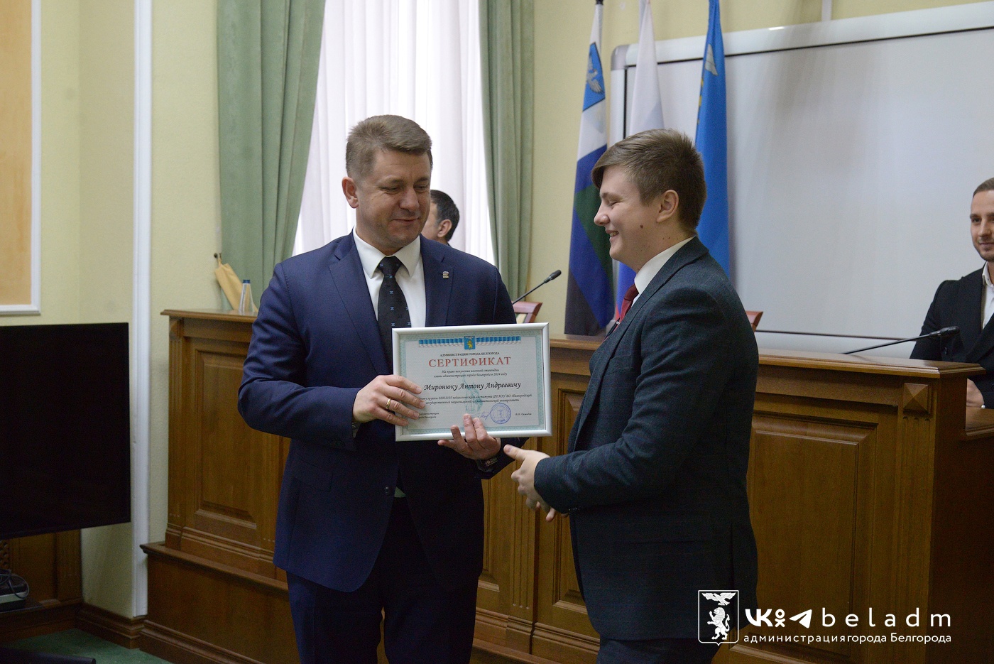 Награду из рук мэра Белгорода Валентина Демидова получили 30 лучших студентов белгородских вузов и колледжей. Глава администрации Белгорода отметил, что у нас потрясающая молодёжь, которой он искренне восхищается и гордится.