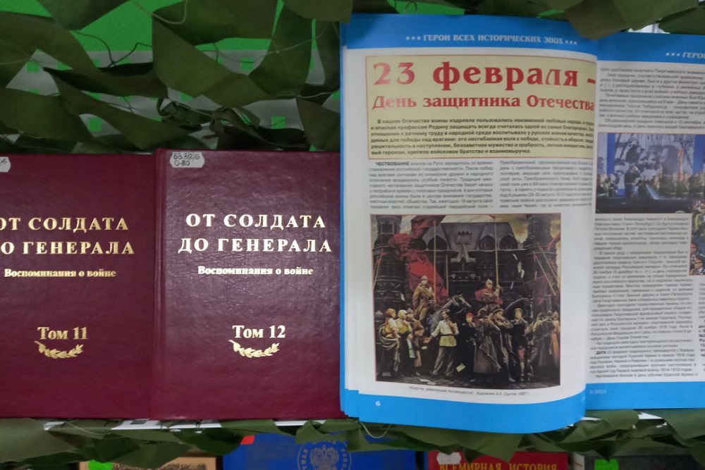 На выставке, посвящённой Дню защитника Отечества, представлены книги из фонда научной библиотеки имени Н.Н. Страхова.