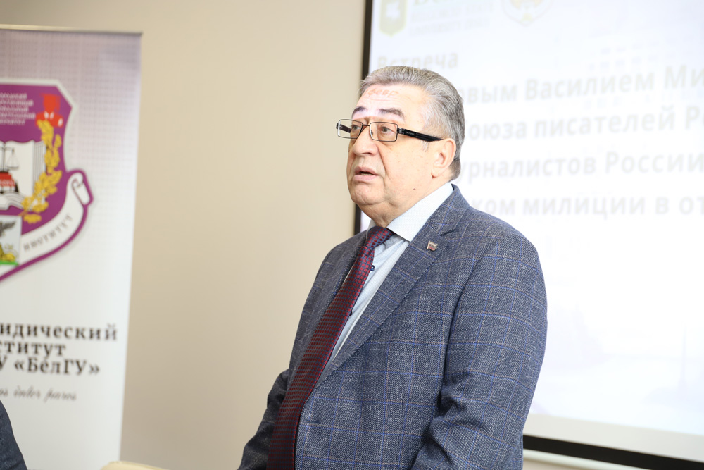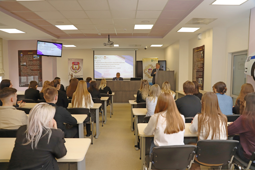 На площадке юридического института НИУ «БелГУ» состоялась встреча с членом Союза писателей России, Союза журналистов России, полковником УМВД в отставке Василием Жураховым. Писатель специализируется на журналистских расследованиях и документальной литературе, пишет книги о Героях России и коллегах, которые служат в УМВД.