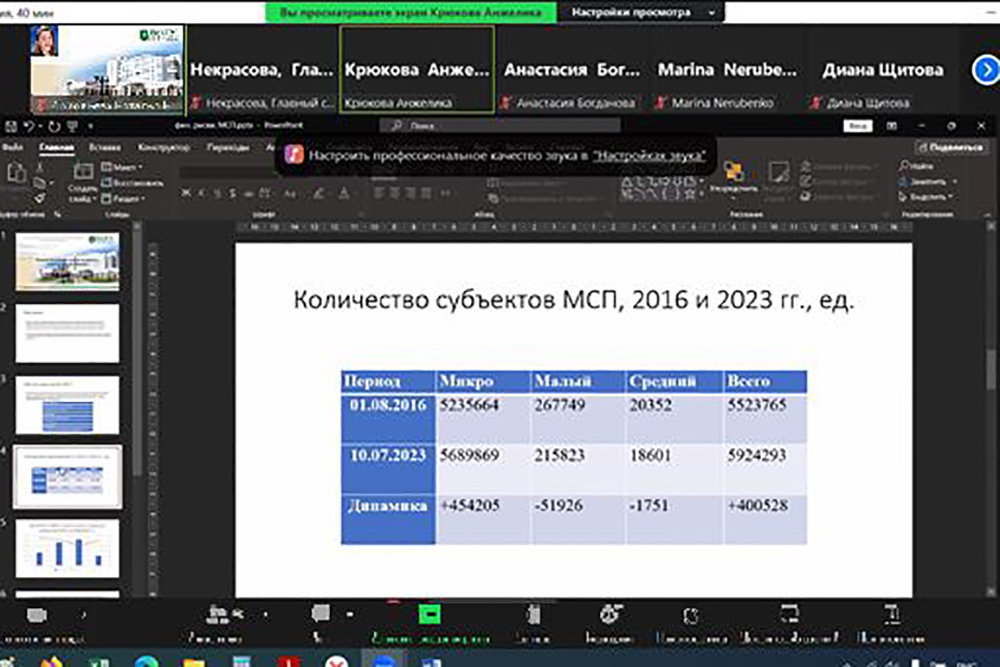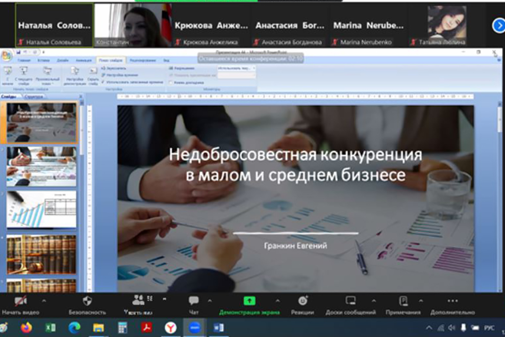 Участниками круглого стола, посвящённого развитию субъектов малого и среднего предпринимательства как важной составляющей экономической деятельности страны, стали учёные и студенты российских вузов, обучающиеся по направлениям подготовки, связанным с бизнес-аналитикой, экономикой и финансами. Открывая встречу, доцент кафедры инновационной экономики и финансов института экономики и управления НИУ «БелГУ» Наталья Соловьёва обратила внимание на то, любой бизнес связан с рисками, и полностью устранить негативные факторы не получится, но некоторые проблемы можно предусмотреть и заранее продумать стратегию работы в неблагоприятных ситуациях. Анализу таких ситуаций и посвятили научную дискуссию.