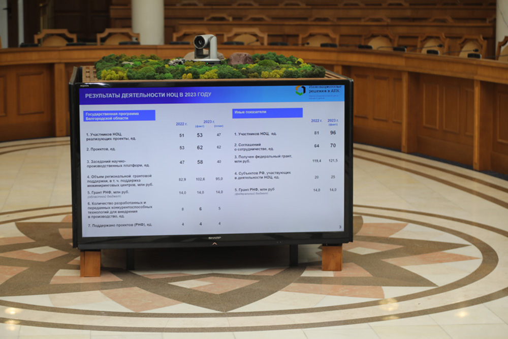 Проект отчёта о реализации программы деятельности научно-образовательного центра мирового уровня «Инновационные решения в АПК» за 2023 год представил врио министра экономического развития и промышленности Белгородской области Максим Гусев. Он отметил, что фактически все целевые значения показателей исполнения программы НОЦ в минувшем году были выполнены с перевыполнением плана. Число участников НОЦ увеличилось до 96 (2022-м году их было 81), было заключено 70 соглашений о сотрудничестве (в 2022-м – 64), с 53 до 62 увеличилось число реализуемых проектов. При этом объём грантовой поддержки из федерального бюджета составил 121,5 млн рублей, а из регионального бюджета – 102, 6 млн рублей, часть из которых была направлена на поддержку инжинирингового центра. Ещё четыре проекта поддержаны грантом РНФ, на их реализацию выделено 28 млн руб. – по 14 млн из федерального и регионального бюджетов.