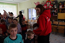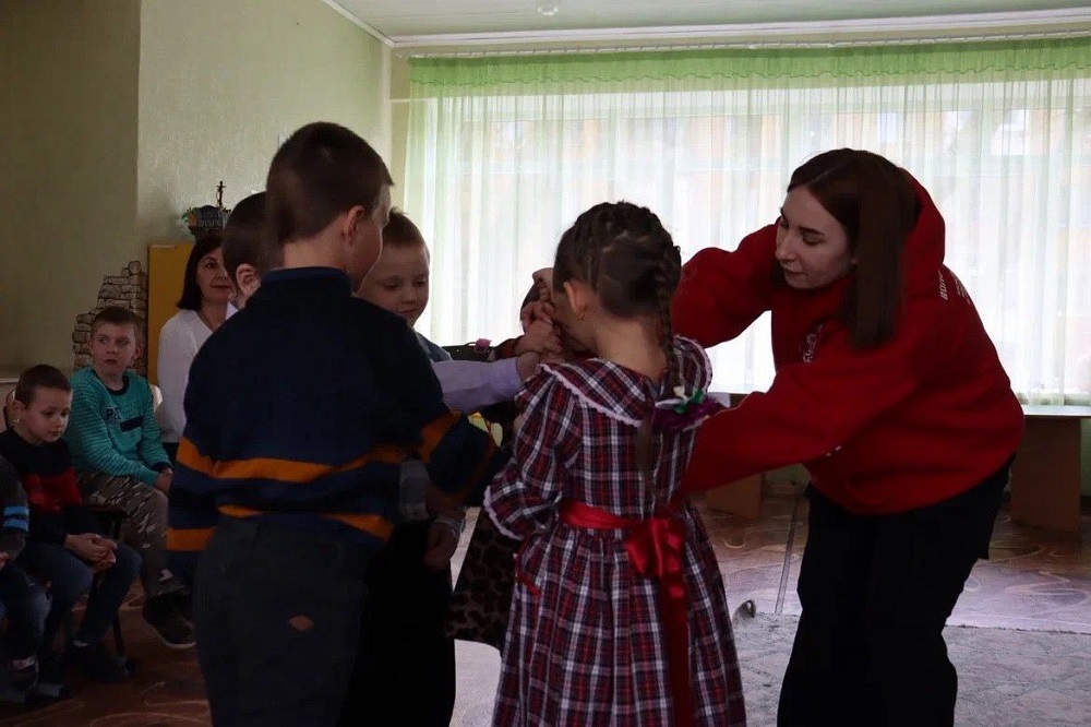 В рамках поездки добровольцы посетили военный госпиталь, встретились с детьми, потерявшими родителей. Для ребят организовали настоящий праздник, играли в народные игры, делали фигурки из шариков и радовались совместному времяпровождению.