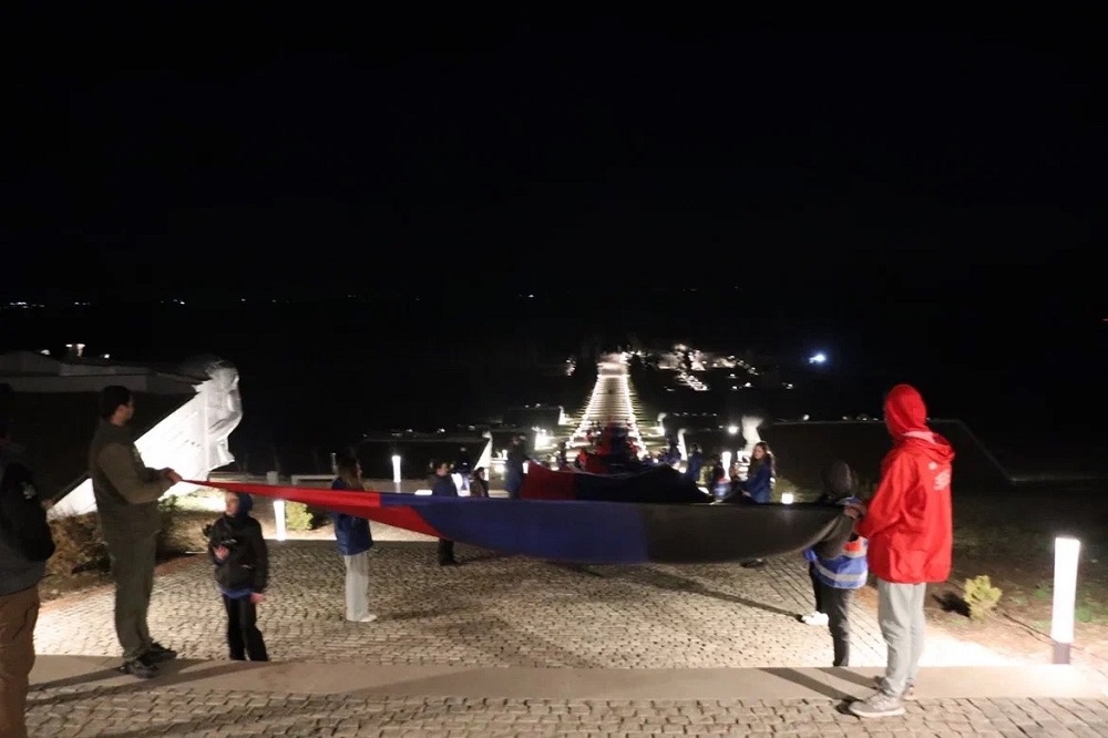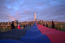 Волонтёры приняли участие в автопробеге и растянули флаг ДНР длиной 200 метров на мемориальном комплексе «Саур-Могила».
