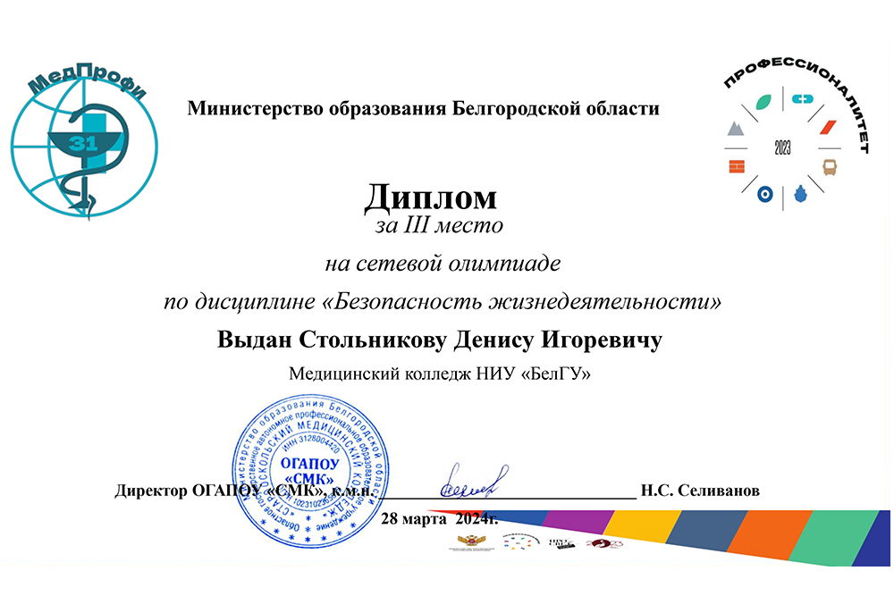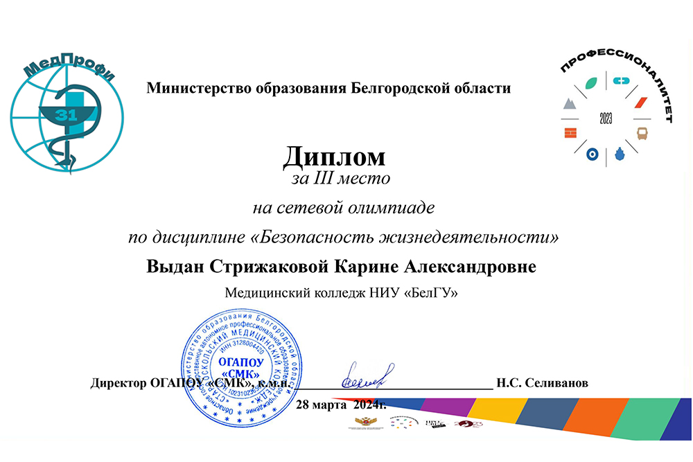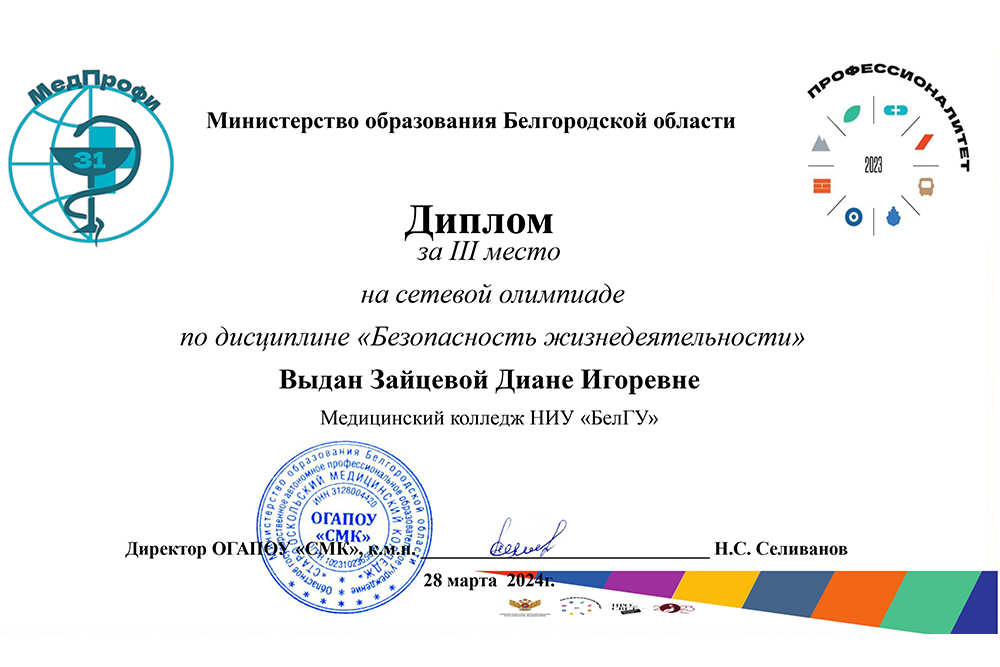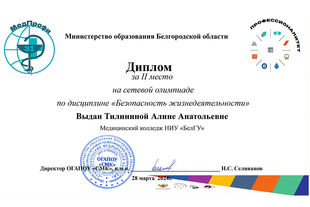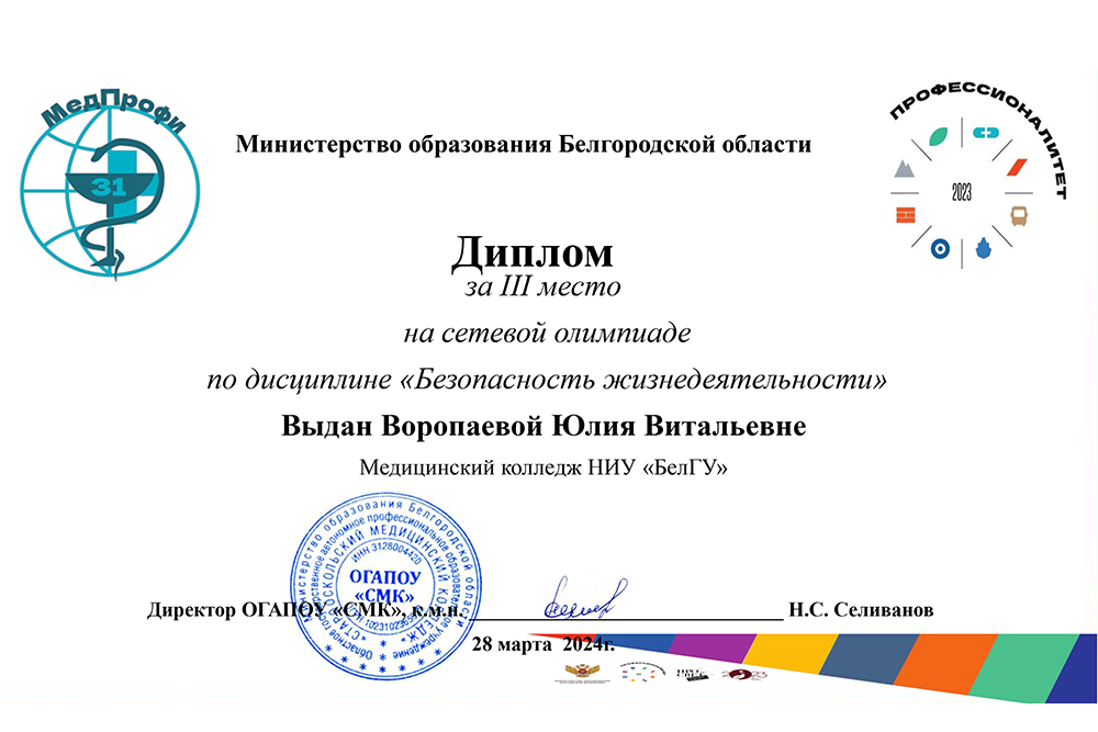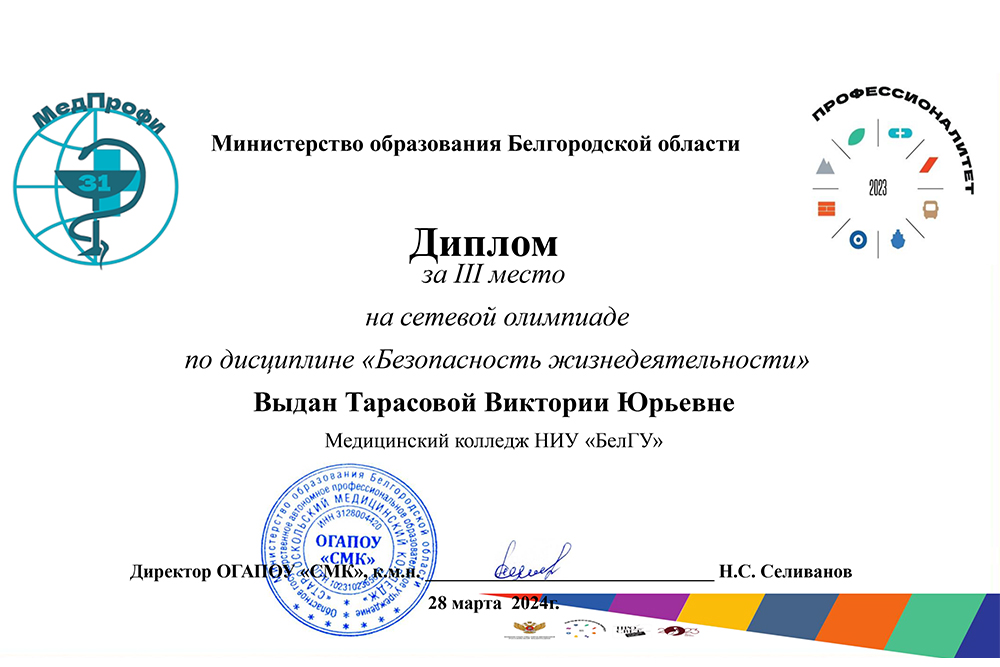 Студенты медколледжа НИУ «БелГУ» стали призёрами сетевой олимпиады