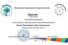 По результатам олимпиады второе место заняли Алина Тилинина и Владимир Герасимов. Дипломов третьей степени удостоены Валерия Арбузова, Юлия Воропаева, Александра Гуреева, Диана Зайцева, Денис Стольников, Виктория Тарасова, Карина Стрижакова.