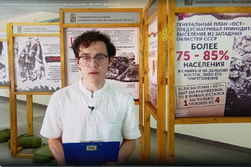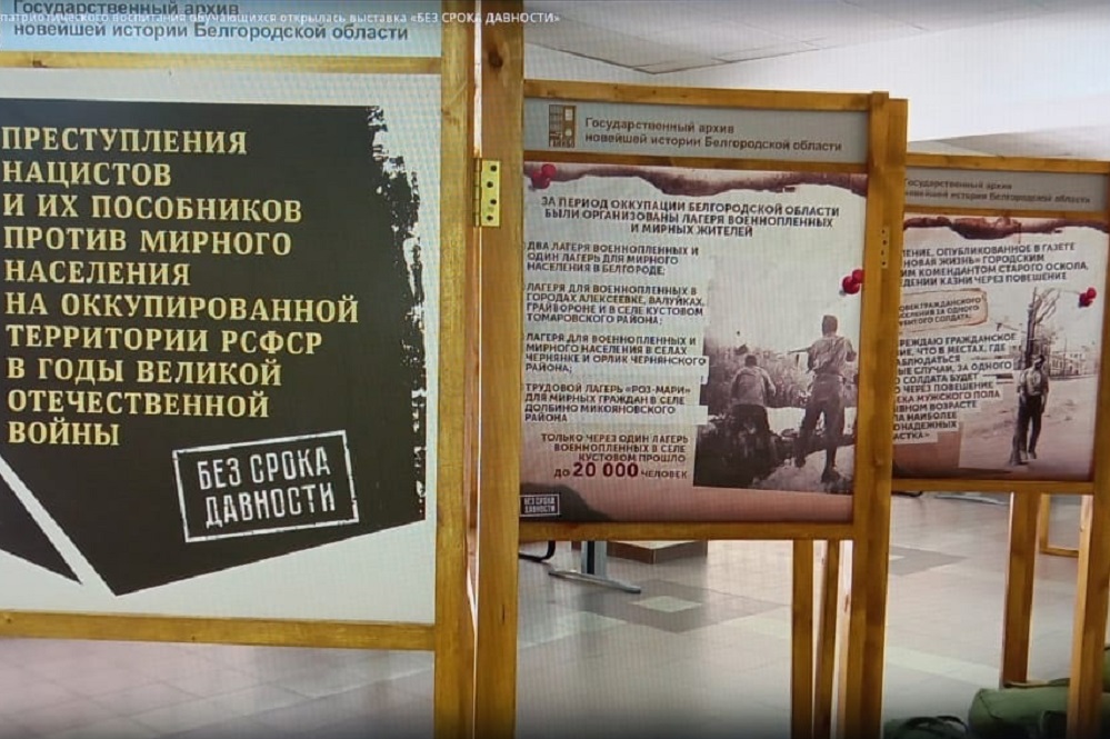 В этот день в Центре гражданско-патриотического воспитания обучающихся открылась выставка архивных документов «Без срока давности», подготовленная в рамках проекта «Популяризация архивного наследия «Белгородчина накануне и в дни Курской битвы». На ней представлены документы и фотографии из российских архивов, в том числе Государственного архива Белгородской области (ГАБО) и Государственного архива новейшей истории Белгородской области (ГАНИБО), из личных архивов, рассказывающие о жесточайшей оккупационной политике и терроре по отношению к мирному населению со стороны немецко-фашистских захватчиков и их пособников в период оккупации Белгородчины. Многие из этих документов были недавно рассекречены.