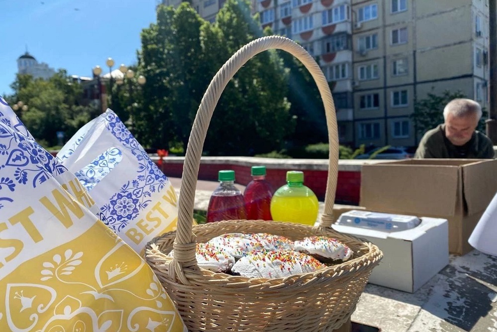 Помимо этого в рамках пасхального марафона добровольцы передали куличи и яйца военным, которые стоят на защите страны.