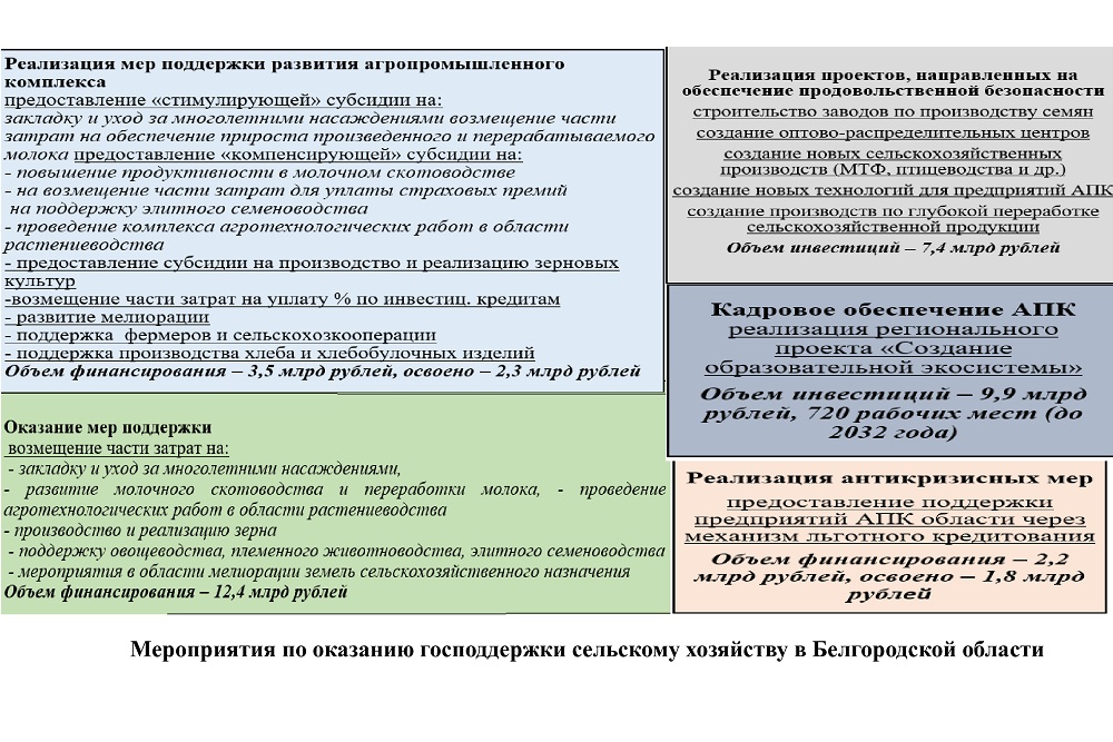 Спикер обратила внимание на то, что с каждым годом процент развития инноваций в Белгородской области и оснащения ими различных агропроизводств растёт. Это происходит за счёт научных центров. Ключевым элементом, способствующим развитию инноваций в аграрном секторе региона, является научно-образовательный центр мирового уровня «Инновационные решения в АПК», базовой площадкой которого является НИУ «БелГУ».