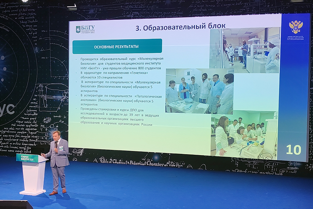 Важную роль Белгородского госуниверситета по созданию генетических моделей заболеваний подчеркнули в своих докладах на саммите представители индустриальных партнёров НИУ «БелГУ» – руководитель направления «Генная терапия» научного центра трансляционной медицины Университет «Сириус» Александр Карабельский и научный сотрудник ООО «Марлин Биотех» Иван Галкин.