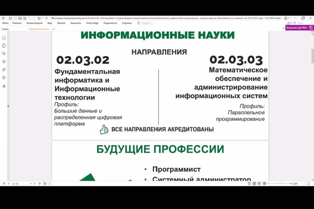 С более подробной информацией об условиях поступления можно ознакомиться на сайте приёмной комиссии НИУ «БелГУ».