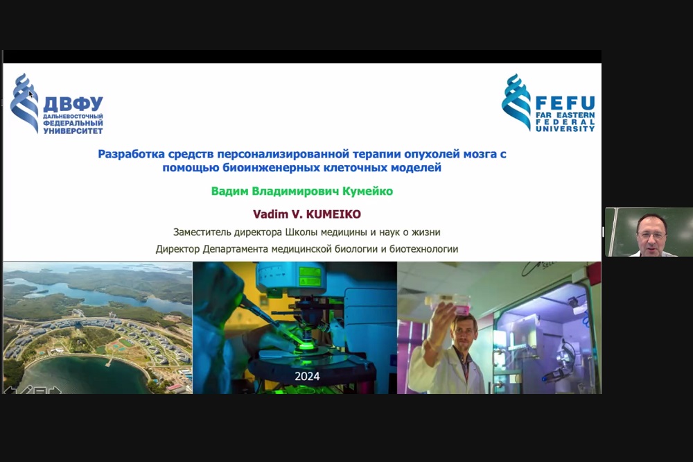 Продолжилось пленарное заседание выступлением ведущих учёных из разных стран. Так, заместитель директора Школы технологий будущего Южно-Китайского технологического университета профессор Цай Хунмин познакомил участников симпозиума с актуальными исследованиями в области применения неконтролируемой кластеризации для генов, клеток и тканей. Свой доклад на тему «Разработка средств персонализированной терапии опухолей мозга с помощью биоинженерных клеточных моделей» представил заместитель директора Школы медицины и наук о жизни ДВФУ, старший научный сотрудник ННЦМБ ДВО РАН Вадим Кумейко. Вопросы, касающиеся современного состояния и эволюции биогеохимической структуры Чёрного моря, были подробно рассмотрены в докладе директора ФГБУН ФИЦ «Морской гидрофизический институт РАН», члена-корреспондента РАН Сергея Коновалова. Директор Центра теоретических проблем физико-химической фармакологии РАН, профессор МГУ им. М. В. Ломоносова, член-корреспондент РАН Михаил Пантелеев выступил с докладом «Физиология гемостаза: новые открытия и старые загадки».