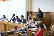 Содокладчиком по данному вопросу выступил министр природопользования Белгородской области Роман Татаринцев, который обратил внимание на сотрудничество с институтом наук о Земле НИУ «БелГУ» в разработке полезных ископаемых для потребностей региона.