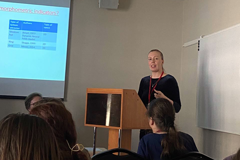На симпозиуме начинающих карьеру специалистов «New horizons of psychiatry: youths4youths» в рамках Всероссийского конгресса с международным участием «Психическое здоровье в меняющемся мире» в Санкт-Петербурге доцент кафедры психиатрии, наркологии и клинической психологии медицинского института НИУ «БелГУ» Ульяна Москвитина представила доклад на английском языке. Речь шла о способе макроэнцефалометрии полушарий большого мозга с учётом их аккомодации в условиях видимой формы конечной области открытого окружающего человека пространства (Патент на изобретение № 2810412 от 27.12.2023 г.).