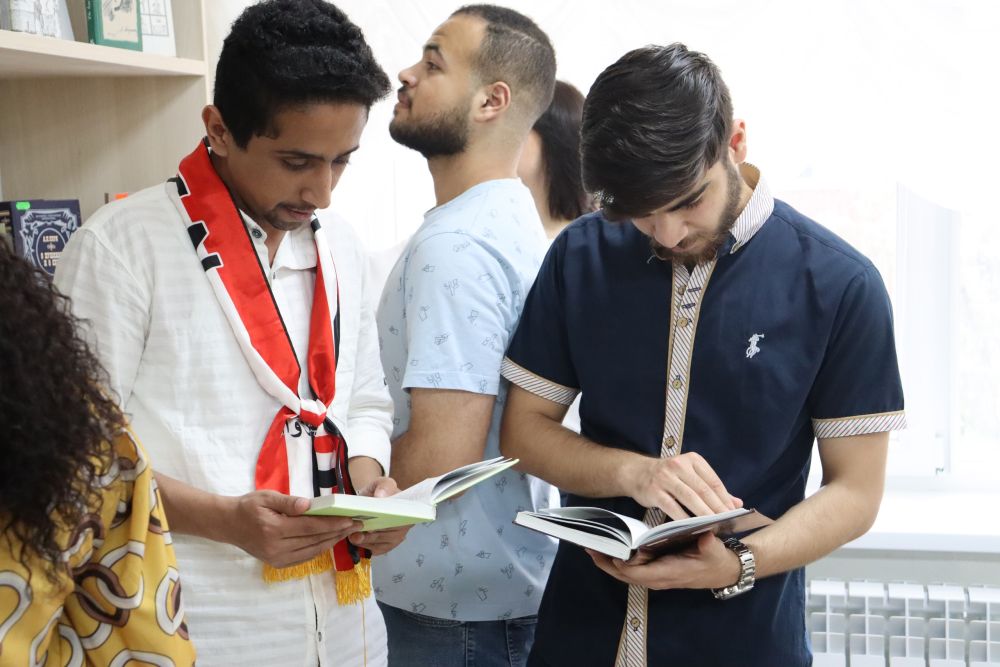 Студенты из Сирии, Эквадора, Колумбии, Марокко, Ирака, Египта, Китая, Анголы, Камеруна, Афганистана, Узбекистана, Чад, Сенегала, Иордании, Боливии, России нашего университета, Белгородского института пищевых наук при Дэчжоуском университете, Белгородского индустриального колледжа собрались в Центре дружбы народов и видеоконференции Яндекс Телемост, чтобы поговорить о русском языке, прочитать стихи Александра Сергеевича Пушкина, а также строки других поэтов, посвященные «солнцу русской литературы».