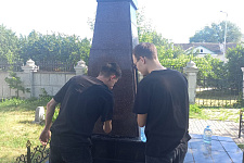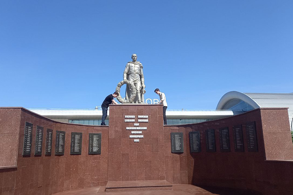 Волонтёры «ДоброТворца», сотрудники патриотического Центра и отдела по воспитательной работе привели в порядок памятник и территорию вокруг него, а также возложили цветы.