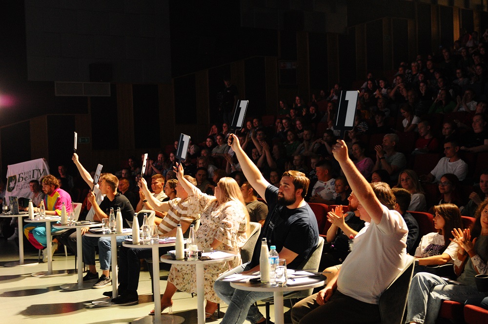КВН-команда вуза «Теперь мои» успешно сыграла в четвертьфинале лиги в Старом Осколе и вышла в полуфинал.