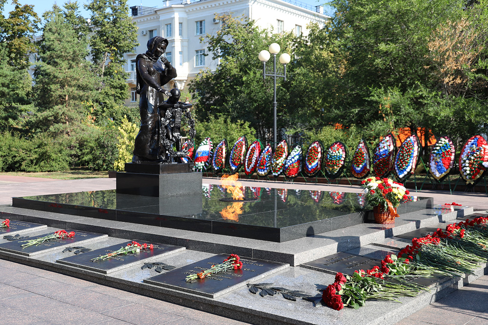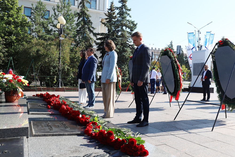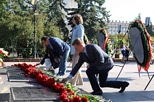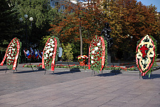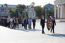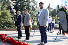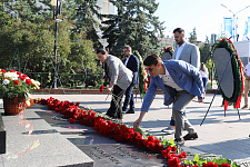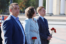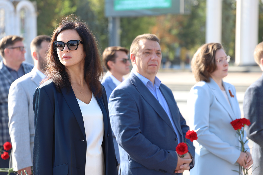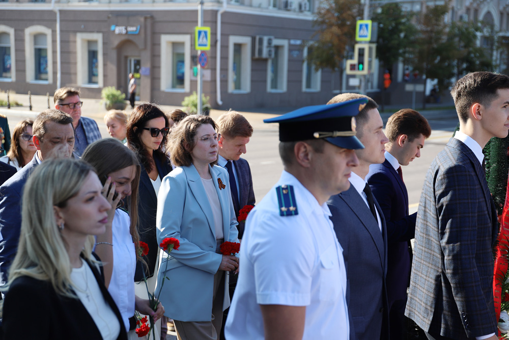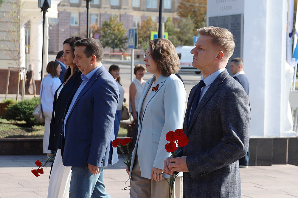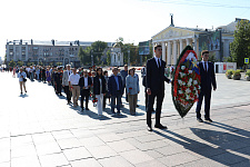Представители ректората НИУ «БелГУ», профсоюзной организации вуза, директора институтов и колледжей, студенты по традиции возложили цветы к вечному огню на Соборной площади Белгорода.