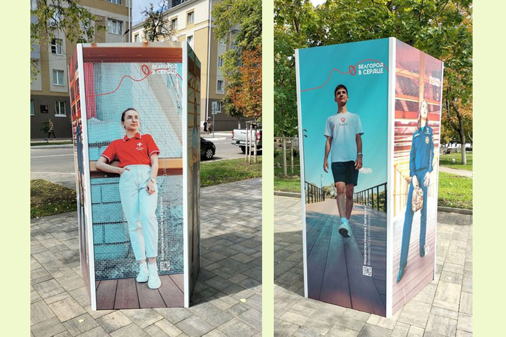 Фото волонтёров наряду с портретами других участников, размещены на пятигранных стендах на главном пешеходном маршруте в центре Белгорода. По задумке авторов они будут символично соединять повреждённый в результате атаки ВСУ арт-объект «Сердце» у универмага «Маяк» и новый арт-объект «Белгород в сердце» у входа в парк Победы.