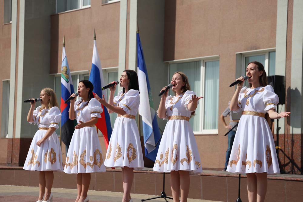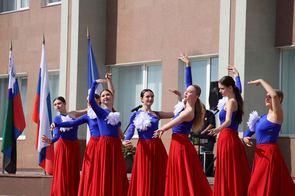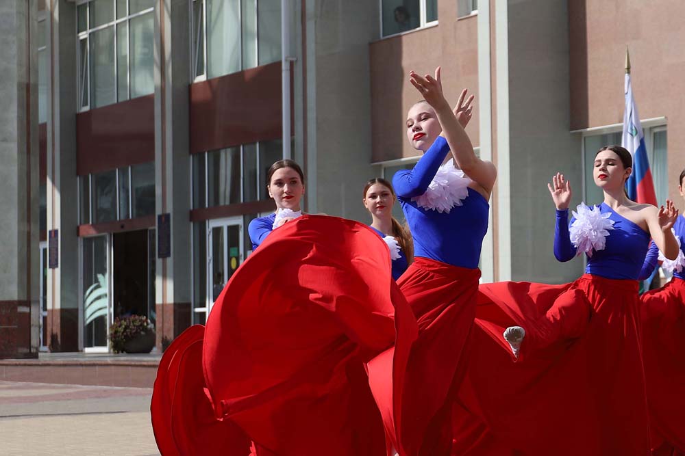 Яркими и патриотическими выступлениями участников праздничного мероприятия поздравили солисты вокальной группы «31 регион», балета «Мариданс», студии современного танца «Данс Хаос», ансамбля народной песни «Отрада», коллектив современного эстрадного танца «Ритм» Молодёжного культурного центра НИУ «БелГУ».
