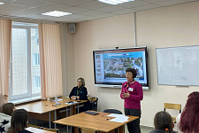 Заведующая кафедрой романо-германской филологии и межкультурной коммуникации доцент Оксана Кузьмина рассказала школьникам старших классов о направлениях подготовки в ИМКиМО, а также о некоторых особенностях приёмной кампании 2025 года в НИУ «БелГУ».