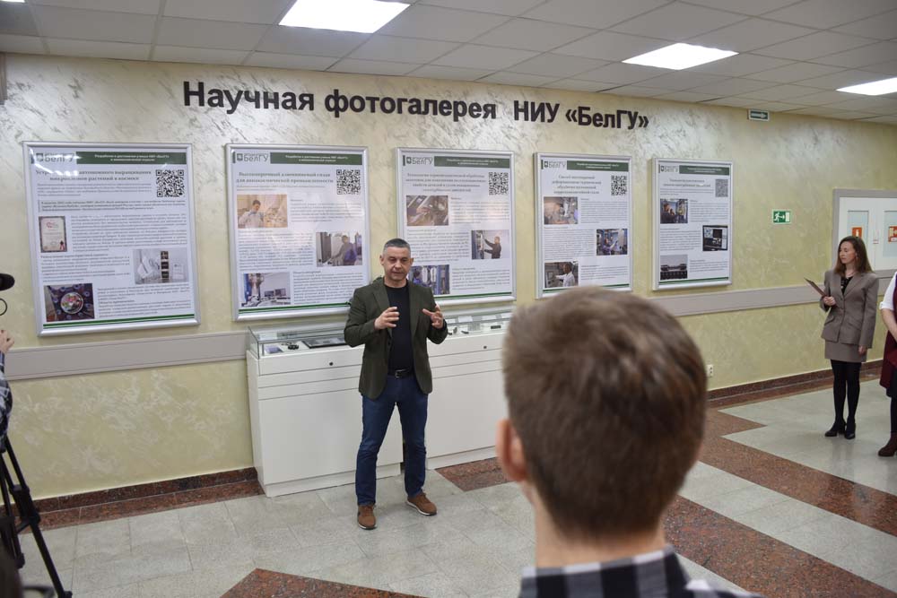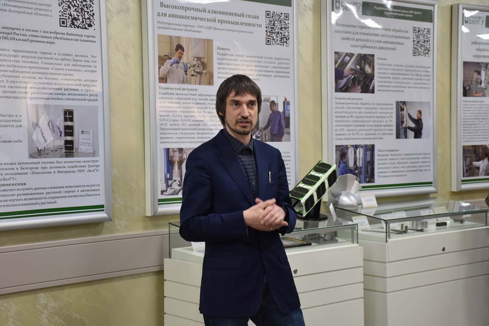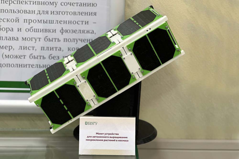 Гостям напомнили, что Белгородский госуниверситет принимает активное участие в разработках для авиакосмической отрасли. Так, в 2022 году учёными НИУ «БелГУ» была запущена в космос с космодрома Байконур белгородская сирень сорта «Великая Победа».
