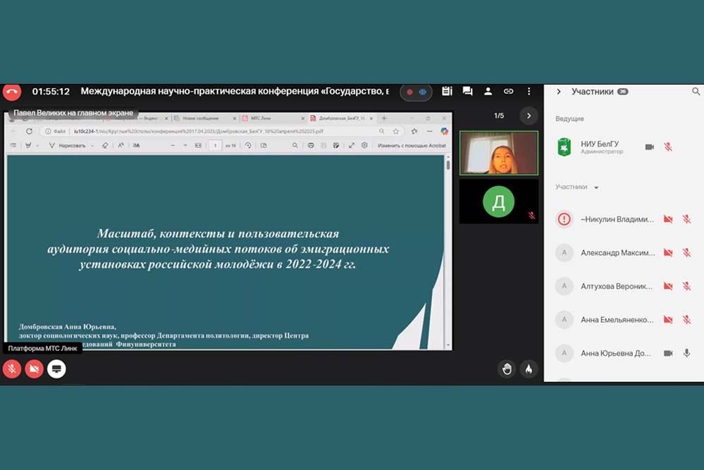 Докладчик подчеркнула, что в условиях масштабирования и усложнения технологий внешнего деструктивного информационно-психологического воздействия наблюдается дисбаланс между масштабом, технологической наполненностью, пользовательским резонансом, вовлечённостью молодой национальной интернет-аудитории в социально-медийные информационные потоки эмиграционной мобилизации направленностей и российским «информационным ответом» на возникающие в данной связи риски и угрозы.